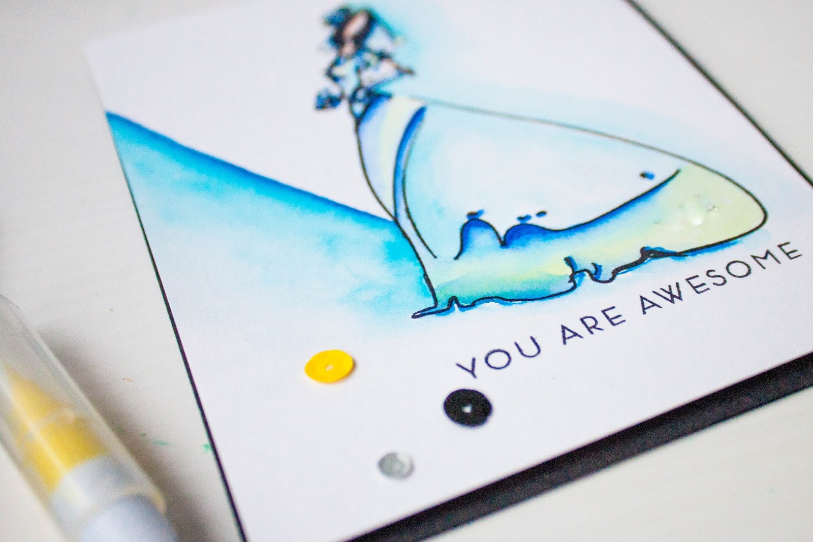 Хотелось очень написать "жаркий привет", но самая обсуждаемая тема - странная погода, летом мы насладиться не успели, как пришел холод. А я так мечтала о бассейне на грядущие выходные) Вот и открытка у меня под стать лету - сдержанная, холодная. Все таки окружение очень сильно влияет на наше творчество!